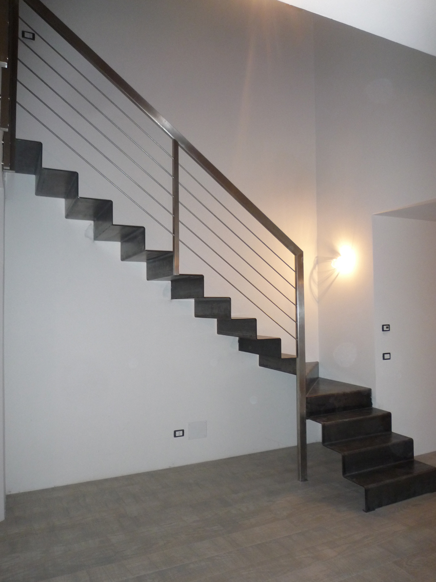 Mi piace la scala, ė molto leggera; ha la struttura in lamiera? A vederla così  sembra un po' instabile. É tutta a sbalzo, tranne gli appoggi a terra e sul solaio superiore ?
